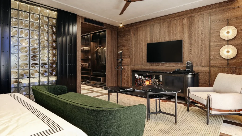 Nuestro equipo es responsable de la fabricación e instalación del mobiliario a medida de sus 101 habitaciones y suites, incluyendo mesitas de noche, muebles minibar, bancadas y cabeceros, abordando el proyecto con un enfoque integral que combina precisión, coordinación y capacidad industrial.